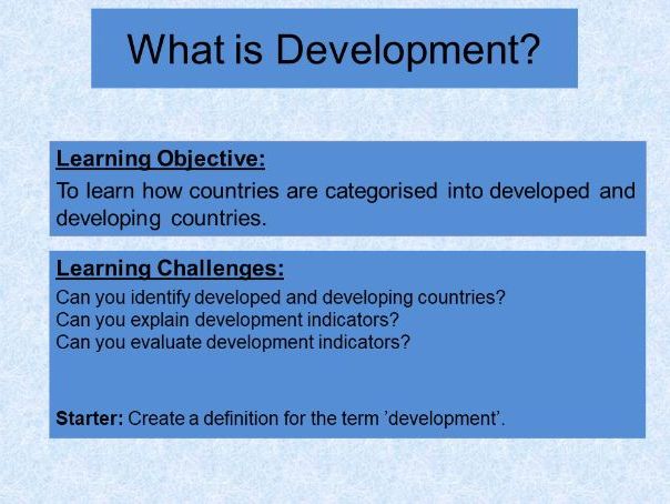 Pupils will start by looking at what is development and will use a picture study to challenge their misconceptions on what a developed country looks like. Pupils will then be introduced to development indicators and use data to begin to form opinions on whether a country is seen as developed or developing.
