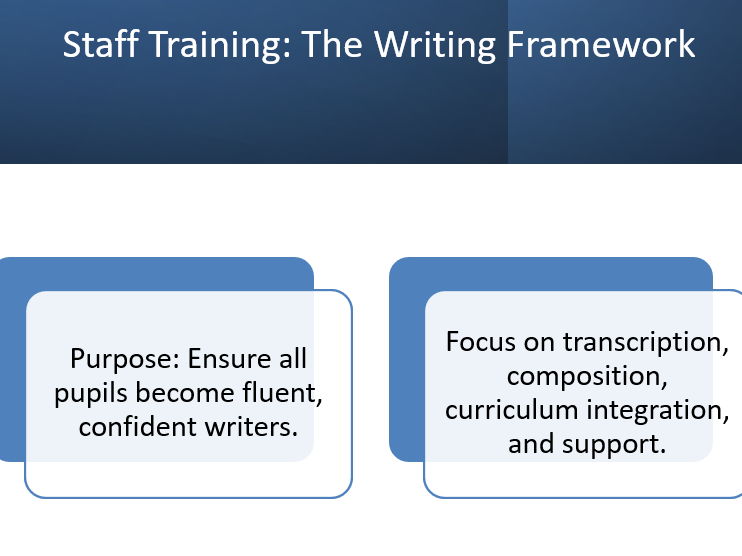Six training sessions focus on: - Foundations of Writing: Framework & Simple View of Writing