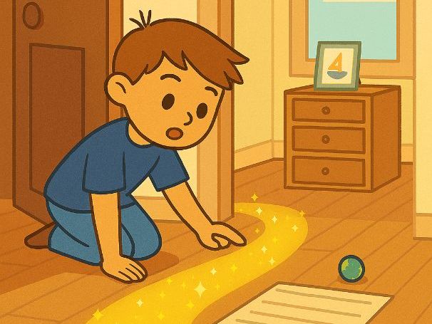 A warm, accessible story about Tom, his favourite marble, and the mysterious glitter trail that leads him to the truth.